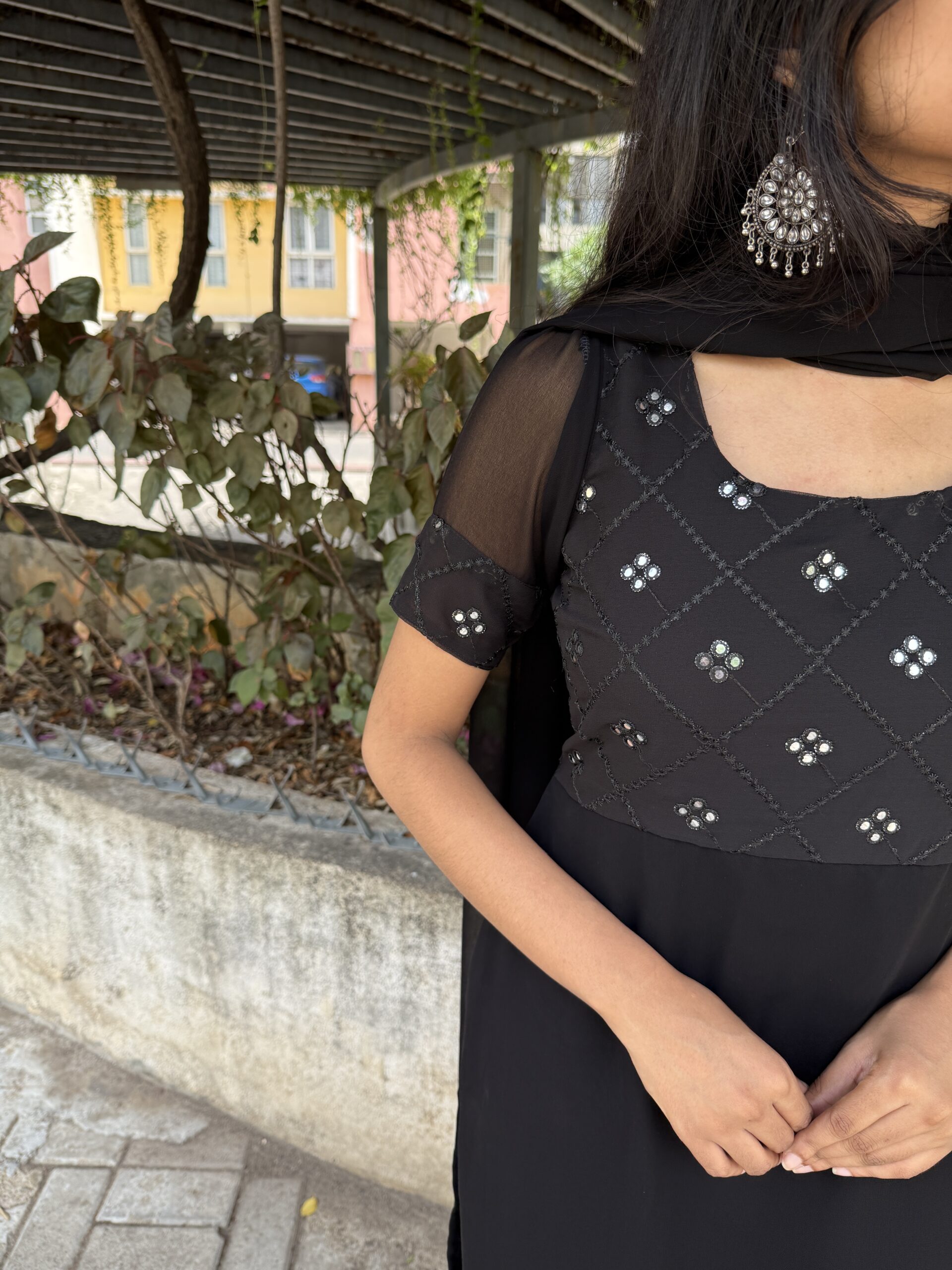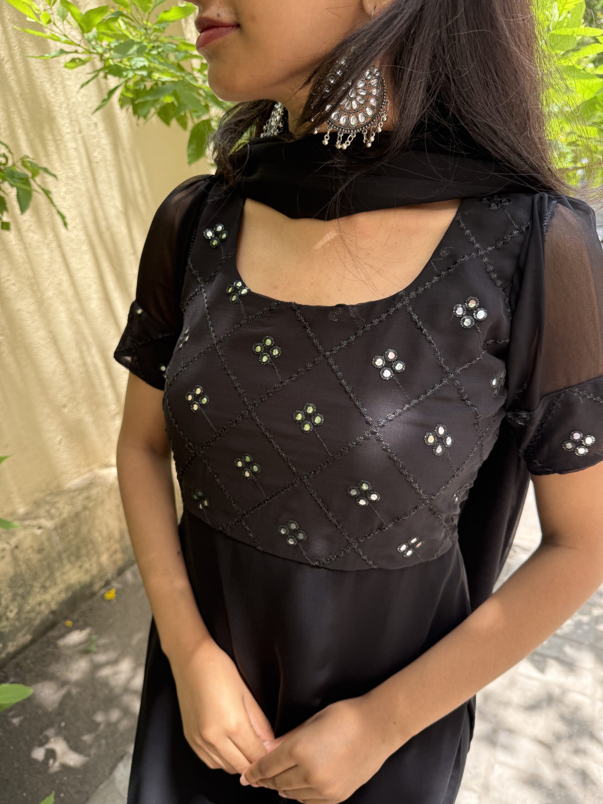 - Georgette mirror work kurta with Dupatta.