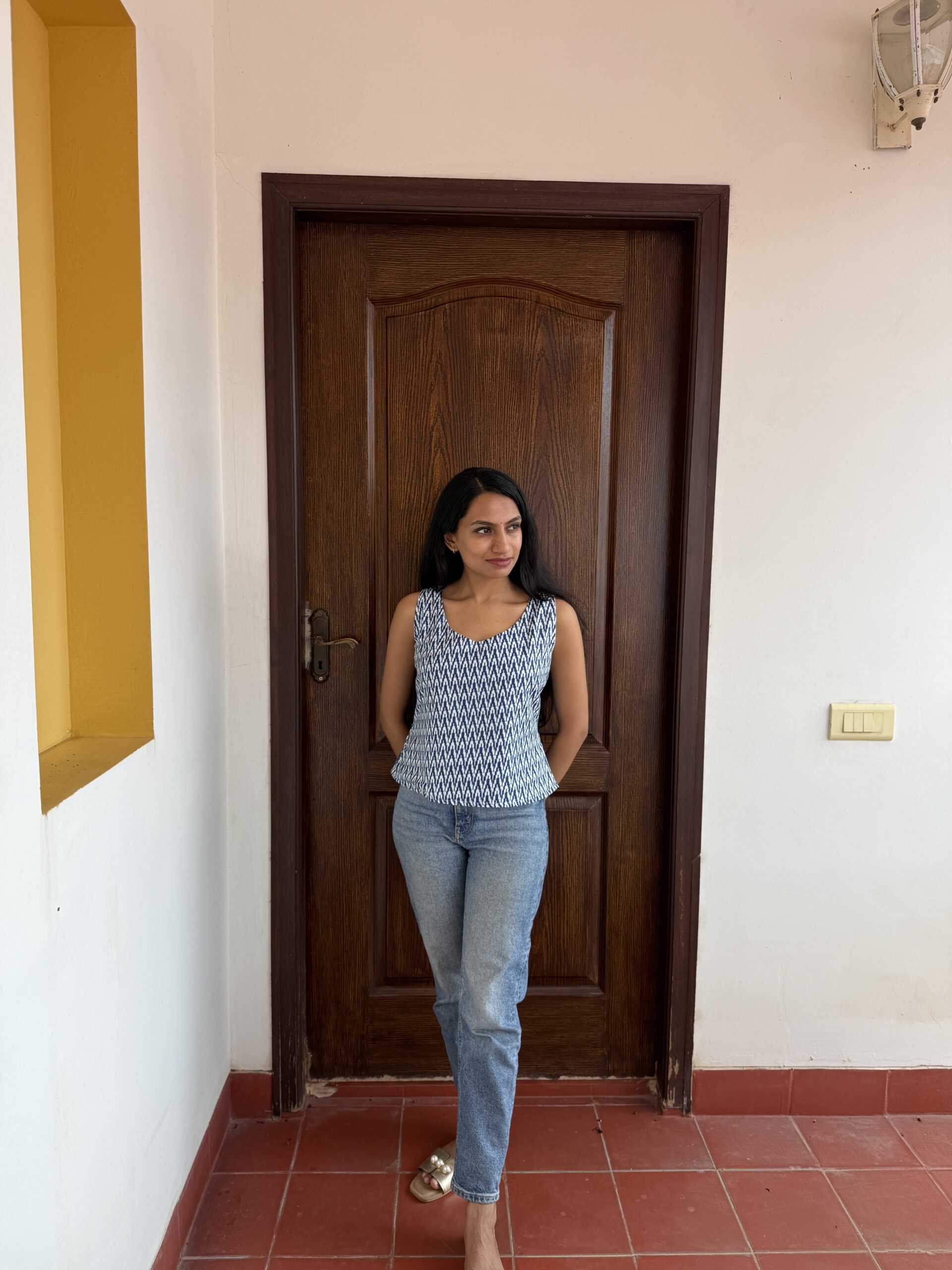 • Printed cotton sleeveless Top.