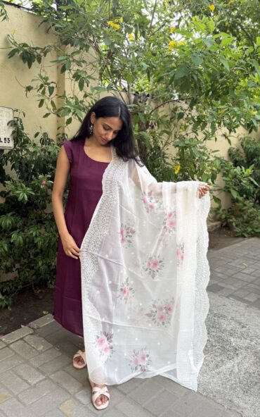 The signature White Kurta with Organza Dupatta